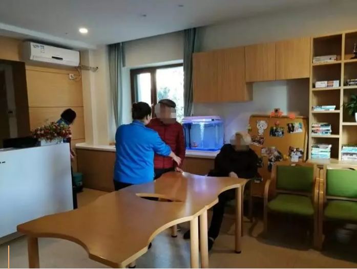 与以上决策相关的努力,是与管理层和护理组合力应对风险苗头。平日里,母亲睡醒后多半坐在二楼公共空间。那里电视常开邻居们常在,即使互不交流也不显孤独。部分护理员集中为老人服务,部分护理员分散在各间住房打扫卫生。这一楼层的22位入住者大多是护理级别最高的老人,能独立行走的只有五六位,Y老伯就是其中之一。2018年12月29日上午,他与一位老伯母还没说上两句话,就突然大喊大叫动手打人,护理员小H奋不顾身冲上前阻挡。我在远处随手拍下照片发给了Z院长和护理组长,指出这是个不得不防的风险因素。收到的答复是,联系家属调药。