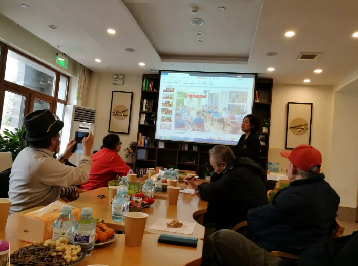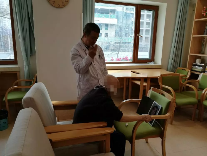 与以上决策相关的努力,是与管理层和护理组合力应对风险苗头。平日里,母亲睡醒后多半坐在二楼公共空间。那里电视常开邻居们常在,即使互不交流也不显孤独。部分护理员集中为老人服务,部分护理员分散在各间住房打扫卫生。这一楼层的22位入住者大多是护理级别最高的老人,能独立行走的只有五六位,Y老伯就是其中之一。2018年12月29日上午,他与一位老伯母还没说上两句话,就突然大喊大叫动手打人,护理员小H奋不顾身冲上前阻挡。我在远处随手拍下照片发给了Z院长和护理组长,指出这是个不得不防的风险因素。收到的答复是,联系家属调药。
